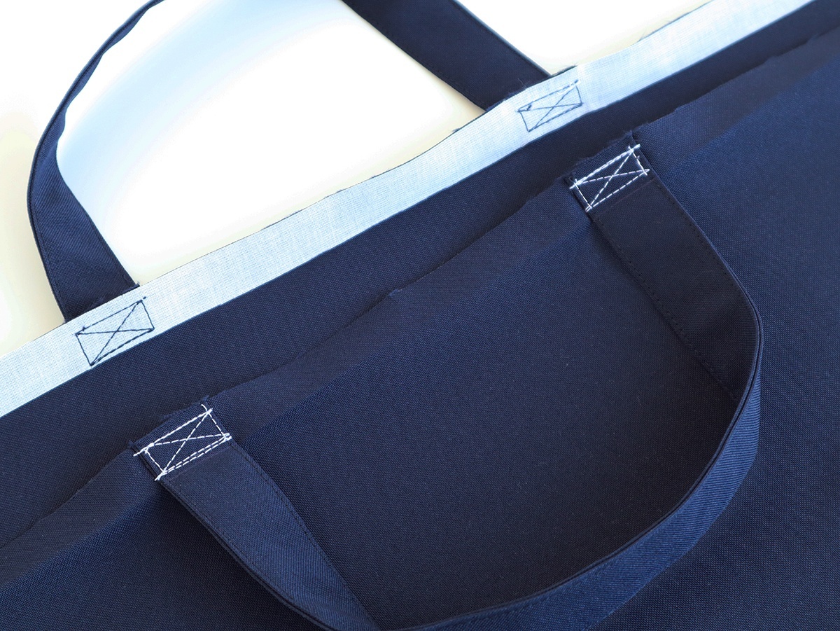 最後の仕上げでもう一周ぐるりとミシンをかけるので、持ち手の取り付け部分は大変丈夫に縫製されていますので安心してお使いいただけます。